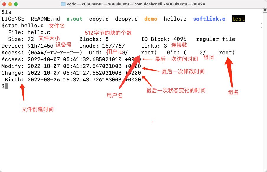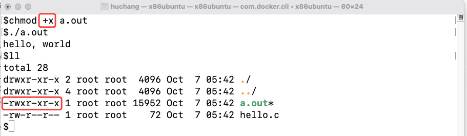 -rw-r--r-- 1 root root 72 Aug 26 15:32 hello.c